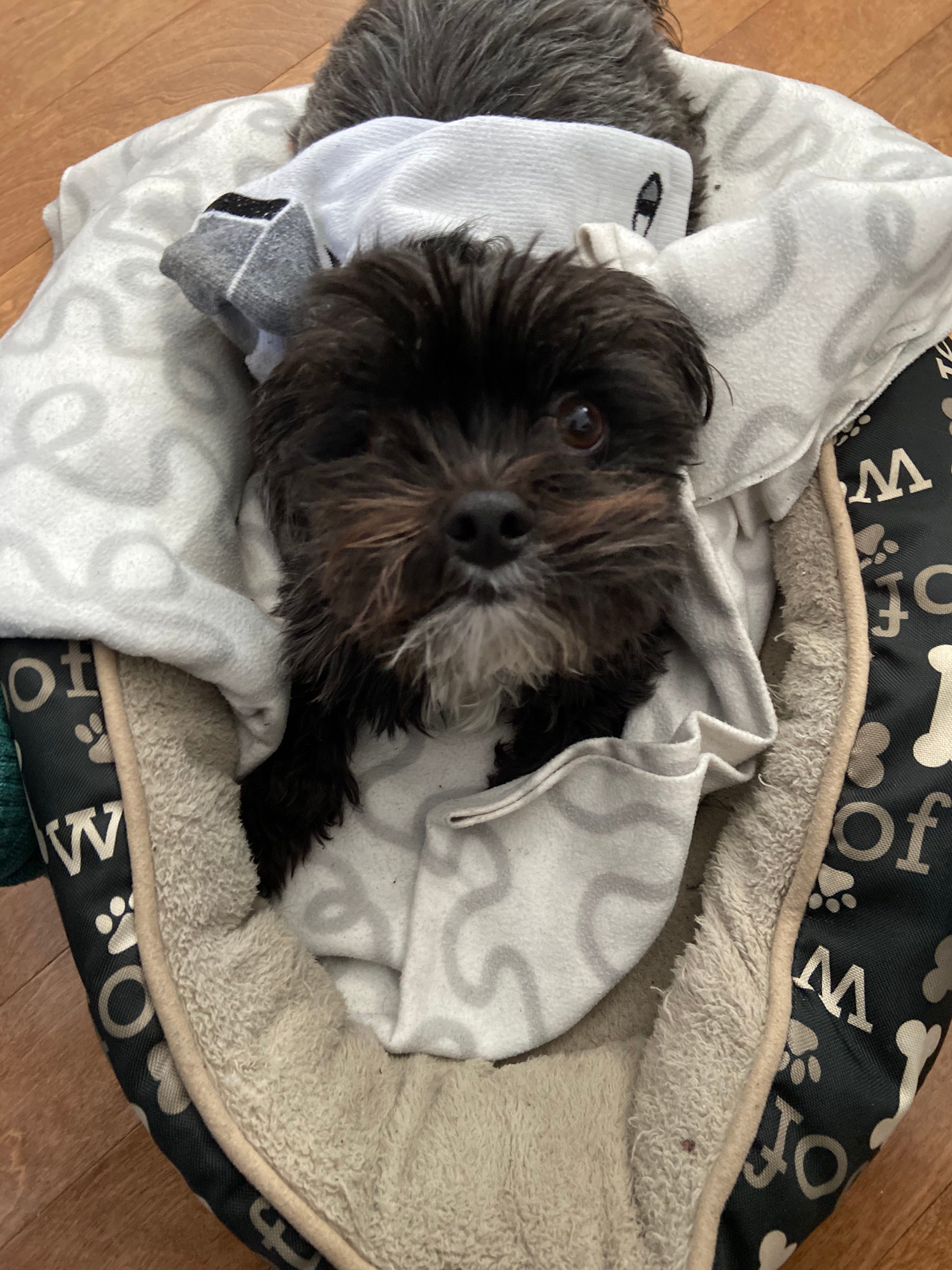 So, I thought perhaps you’d like to hear from Gibson. He’s our 13-pound Morkie. He’ll be three years old in a month or so.